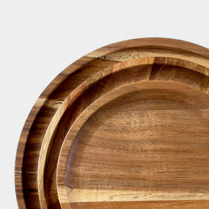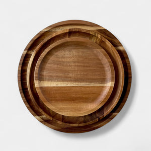 Esta vajilla de madera de parota destaca por sus formas sencillas y su imponente belleza orgánica. Cada plato, tallado artesanalmente, revela las vetas únicas de la madera, combinando tonos cálidos y texturas vivas que convierten cualquier mesa en un escenario natural y acogedor.